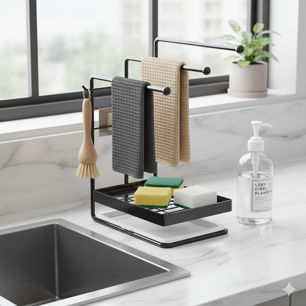 Aanrecht organizer - Vaatdoekhouder - gootsteen organizer - keuken organizers - Afdruiprek - Keuken - Zwart